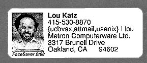 FaceSaver database applications have been extended to allow the information to be used in many applications, such as ID badges, Fax coversheets (FaxMittal(tm)), notepaper, real estate listings, custom organization charts, and even for use in a computer graphics technique for constructing portraits out of sets of dominoes: Domino-Pix(tm)